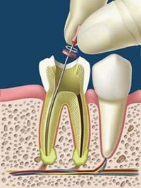 La terapia canalare consiste nell’aprire una cavità di accesso al nervo, rimuovere il nervo e detergere i canali che corrono all’interno del dente fino all’apice, cioè la fine della radice. Rimosso il tessuto pulpare interno mediante strumenti meccanici e lavaggi disinfettanti, si procede a dare una forma conica a questi canali, allargandoli a sufficienza. Finita questa prima fase, cioè svuotato il dente di tutta la polpa e l’eventuale materiale infetto, il canale viene sigillato con una gomma termoplastica (guttapercha) che scaldata e pressata all’interno del canale permette di ottenere un sigillo ermetico tridimensionale, garantendo le percentuali di successo del trattamento più elevate e la maggior stabilità nel tempo. Per questo fattore risulta essere fondamentale la ricostruzione corretta del dente: essendo spesso denti gravemente compromessi può rendersi